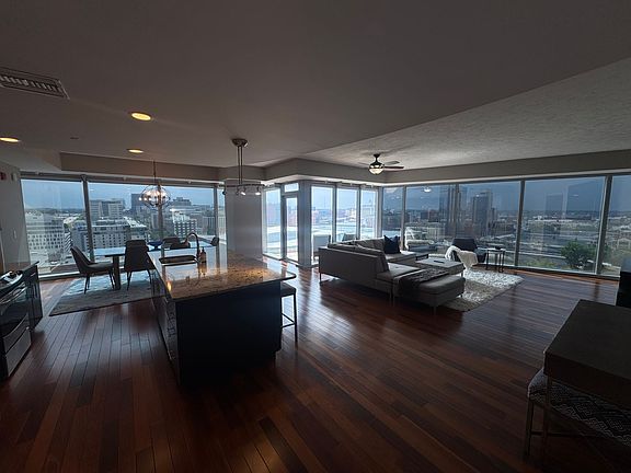 Perched on the southeast corner of the prestigious River House Condominiums, this magnificent 1,891 sq ft penthouse at 335 Bridge St NW, Unit 1300 in Grand Rapids offers an unparalleled luxury living experience. Boasting 3 bedrooms and 3 bathrooms, this unit features breathtaking floor-to-ceiling glass exterior walls that provide astounding panoramic views of downtown Grand Rapids, the Grand River, and Ah-Nab-Awen Park. Inside, you'll find gleaming cherry hardwood floors, elegant granite countertops, and a well-appointed kitchen with an island and in-unit washer/dryer. The rare convenience of two parking spaces in a private resident-only parking garage sets this unit apart. Residents also enjoy access to River House's premier amenities, including 24-hour security, a fitness center, indoor pool and hot tub, and a sophisticated club room. With an exceptional Walk Score of 80, you'll be steps away from Grand Rapids' finest dining, entertainment, and cultural attractions. This is more than just a rental; it's an elevated living experience available for lease now.