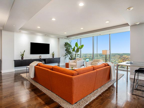 At 2,600 square feet, this 3-bedroom, 2-bathroom condo offers a brilliant floor plan for entertaining. The great room boasts designer built-ins, textured wall panels, and floor-to-ceiling windows. The custom kitchen features a 14 foot island with quartz countertops, tigerwood cabinetry, and an expansive walk-in pantry. The primary suite offers panoramic views and a newly renovated en-suite with walk-in shower. Two garage parking spaces and one storage unit are included with purchase.