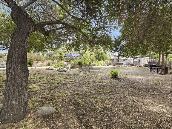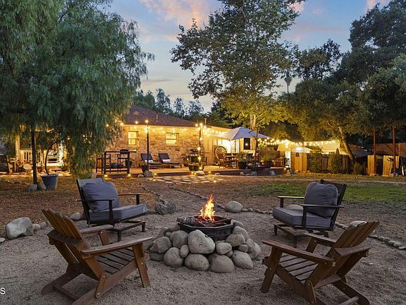 Nestled beneath a canopy of majestic oak trees, this charming 1930s stone cottage is a captivating blend of rustic beauty and timeless appeal. From the moment you step inside, an open floor plan draws you into the heart of the home, where a gourmet eat-in kitchen offers the perfect setting for cooking and entertaining. The living room radiates warmth with its striking river rock wood-burning fireplace, beautifully complemented by wood-style floors. Two inviting bedrooms provide lovely retreats, each offering views of the expansive almost 3/4 acre property.Thoughtfully upgraded, the property includes a new septic system, guest quarters, updated electrical panel, new decking, fencing, mature trees, outdoor lighting, a dog run, carportand so much more. Whether you're seeking quiet relaxation or lively recreation, this property has it all. Enjoy endless fun with your own pickle ball court, putting green, horseshoe pit, and additional outdoor amenities designed for entertainment and enjoyment. An attached one-car garage adds convenience, while the idyllic location just minutes from Lake Casitas and downtown Ojai offers the perfect balance of nature and modern living. This is countryside charm at its finest!