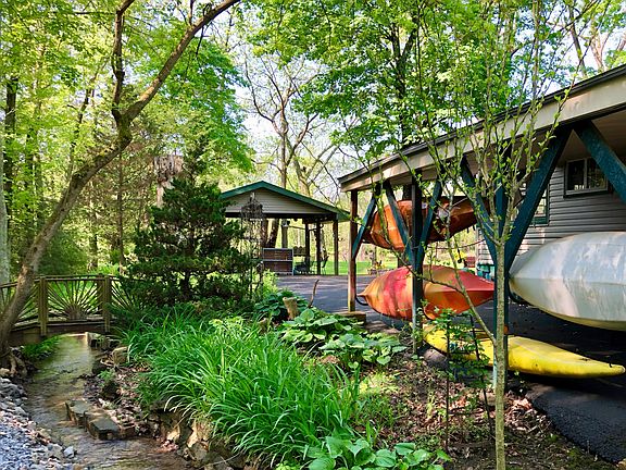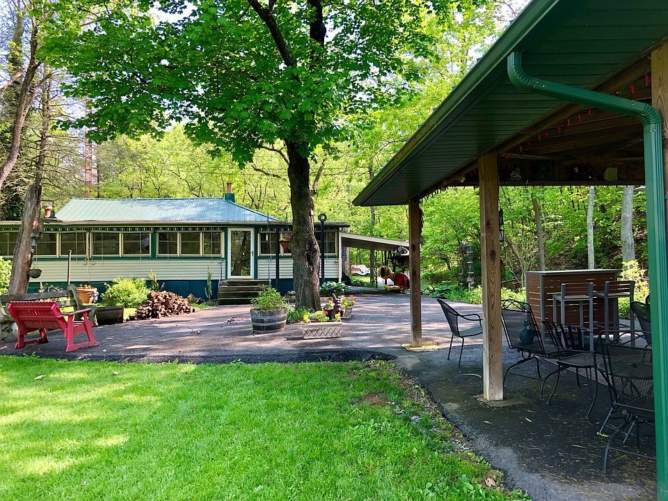 Truly a one of a kind property! Enjoy the Conodoquinet Creek from the comfort of the pavilion or from the only full-length dock on this stretch of "deep" water. You have front row waterfront seats to watch the egret meander by each evening and listen to the frogs at night. The solid concrete dock makes swimming, fishing, and boating easy and fun! The stream trickling down the side of the property offers the quiet babbling of a calming fountain as you sit in the pavilion. This simple, yet cozy, 880 sq. ft. cabin---plus an additional 400 sq. ft. sunporch---has everything you need in a cabin on the water. Three bedrooms, one renovated bathroom with new shower, vanity, and toilet, and a renovated kitchen with new cabinets, countertops, and water filtration system. The tin roof, vinyl siding, vinyl windows, and PEX plumbing, make it maintenance free. The garage is perfect for storage. Currently used three seasons per year, this is the perfect property for relaxing, swimming, boating, fishing, bird watching, and entertaining.