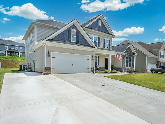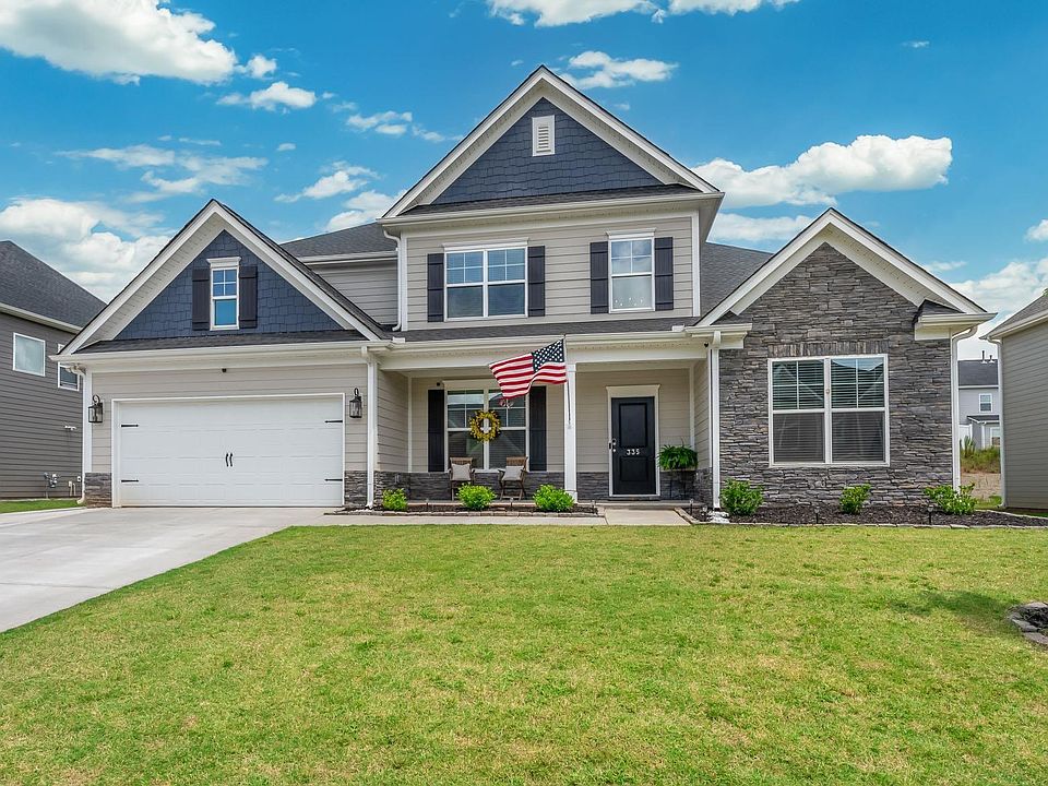 Bring your family home to 335 Carriage Hill! This one-year-old home is located in the desirable Powdersville area, with an assignment to award-winning schools. The popular Open-Concept, Browning floor plan boasts generous space and sophisticated style! Neatly manicured landscaping, an additional parking pad that allows for heavier vehicles, stone accents, and a cozy front porch give tremendous curb appeal as you approach the home. Inside will simply amaze you! The two-story Foyer welcomes you with a fabulous oak staircase, crown molding, and wainscoting. The elegance flows into the adjoining Dining Room that also showcases a linear chandelier and a coveted Butler's Station connecting to the Kitchen. Speaking of the Kitchen... what a stunning space! A huge quartz center island, pristine extended-height cabinetry, tile backsplash, large walk-in Pantry, pendant lighting, and state-of-the-art appliances including a 5-burner gas range with griddle, stainless hood, and wall ovens create an ambiance conducive for a budding chef. A casual Breakfast Room adjoins the kitchen, and the central Family Room is expansive with a gorgeous coffered ceiling and gas log fireplace. The Owner's Suite is adorned with soft carpet and a deep trey ceiling with crown molding. Its Bath is exceptional with oversized tile floors, a large dual-sink vanity, a soaking tub, an impressive tiled shower with bench seating, and an huge 12x11 walk-in closet! The main level is completed with a convenient Half Bath, a spacious Laundry, and a fabulous Staging Area with storage and hooks. The Secondary Bedrooms are found upstairs, along with a roomy Flex area for extra living space. Four sizeable Bedrooms, all with walk-in closets and ceiling fan lights, are split along the upper level, and there are two Full Baths nearby to accommodate them. Out back, find yourself relaxing in the breeze under the covered rear Patio or tossing a ball in the open back yard. This neighborhood has also just completed its community pool! It is located less than five minutes to the Rose Hill Equestrian Center, 20 minutes to Downtown Greenville, and 15 minutes to the Silos in Downtown Easley. Call now for your personal tour!
