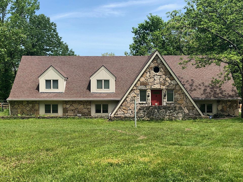 A lot of square footage for the money! Spacious 4 Bed 3 1/2 Bath on an acre in Pewee Valley! Welcoming Foyer. Cozy Den with brick gas fireplace. Updated Eat in Kitchen w/ breakfast bar & dining area w/ access to back patio. Family Rm is currently utilized as a nursery. Comfortable Living Rm. Relaxing Master Bedroom w/ attached Master Bath. 3 more Bedrooms (one with attached Full Bath). Another Full Bath & Half Bath both feature skylights. Laundry Rm rounds out floor plan. Note: Family Rm can easily combine w/ the Bedroom nearby for an awesome Master Suite or In Law Suite. Large fenced in yard with hot tub, enclosed patio, & 4.5 Car Detached Garage w/ Attic space above! New Fence (1 yr), Furnace (5 yrs), Roof (3 yrs), & 2nd hot water heater. Seller is offering a 1 year home warranty.