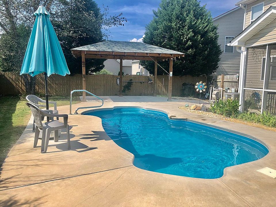 Outside features gorgeous in-ground fiberglass saltwater pool installed in 2019, large gazebo, screened porch, plus enough grass for your furry friends.