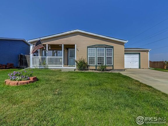 Walking distance to Lochbuie Elementary School, great location for commuters. Beautiful spacious open ranch floor plan. Corner lot manufactured/mobile home tied to the land at the end of cul-de-sac abutting open space where your children can play. Including a completely fenced in back yard with storage shed and single car garage. Flooring has been updated with laminate/manufactured hardwood, tile and the carpet in two bedrooms scheduled to be replaced 8/16. This is a well cared for home!