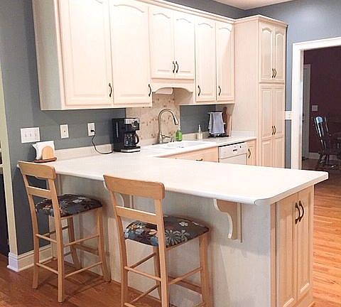 • Kitchen Features: Breakfast Bar, Cabinets Stain, Eat-in Kitchen, Laminate Counters, Pantry, View to Family Room