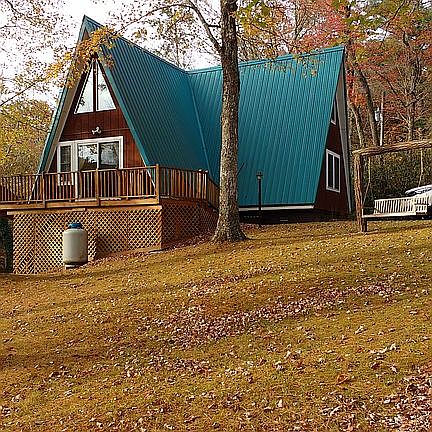Double "A" frame chalet. Stem wall foundation with steel roof. Attached garage and store room. Large loft area with sleeping area and full bath.