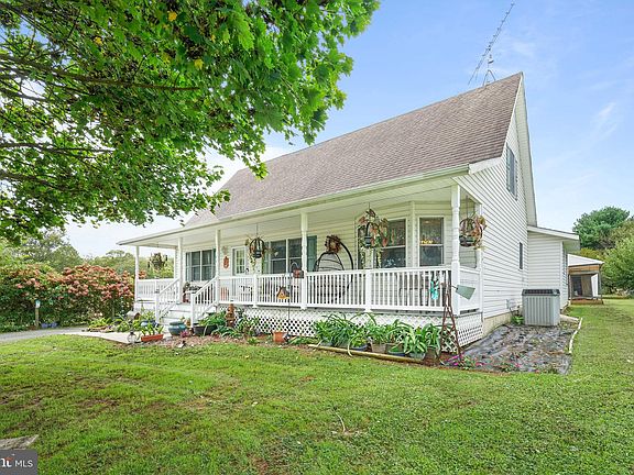 Welcome Home! Don't delay in coming to tour this home in Rising Sun and enjoy sitting on the incredible front porch this fall. This house sits on over an acre and features 3 bedrooms, 2 full bathrooms, and a powder room. Upon entering you have a large formal living room that has access to your first floor primary suite. Main floor also has dining space that opens to kitchen and leads to a den with access to a deck. Upstairs you have 2 more bedrooms, one of which could possibly be split in to two bedrooms. Large partially finished basement with incredible potential with the high ceilings and space for additional rooms. Outside you have a detached 3 car garage that has its own electric panel running from main house. Previously a generator was set up as well. As you walk through the back yard you will come upon peach trees, open space, and 2 additional sheds.
