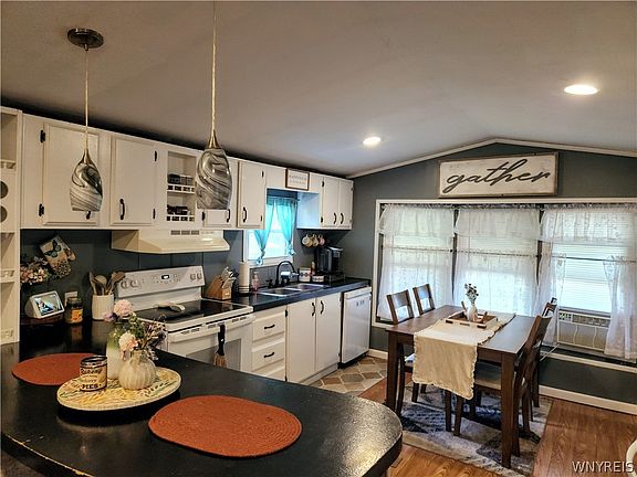 You won’t want to miss this adorable single wide mobile at Arcade Valley Estates. Lovey treed yard with shed. Home features 3 bedrooms and 1 full bath. Charming kitchen with range, refrigerator, microwave and dishwasher. So much storage and counter space. Spacious living room with newer carpeting. 3 bedrooms. Primary bedroom, owners used the other 2 for in home offices. Updated bath. Laundry are comes with Washer and Dryer. Covered carport with new stairs. These homeowners have taken so much care of this home. Home has house windows, Gutters within 2 years, Shed and house roof within 5 years, New laminate flooring and carpeting within 5 years. Updated fixtures within 2 years. Tin metal enclosed on carport within 2 years. This home will Be a pleasure to show and buyers will love it.