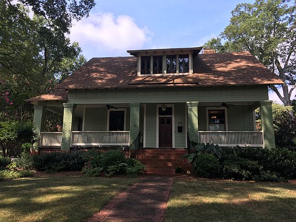 Craftsman home with original hardwood, windows, 4 fireplaces. Living room, library/den, center hall, formal dining room, Florida room with heated floor, laundry room, kitchen, master bedroom/bath (heated floor in bath) downstairs, 2-3 bedrooms upstairs, full bath upstairs with heated floor, 1/2 bath upstairs. One bedroom used as an office. Wrap around porch, tile patio out the back door with arbor. Fenced backyard with parking deck inside fenced area. Misting system set up in flower beds. Mature landscaping with fig trees, muscadine grape vines and ornamental trees.