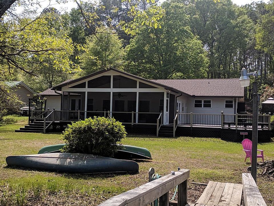 WOW! 3300sf 5 br WATERFRONT ranch home w/open floorplan, sunroom w/bar, new screened porch w/tongue & groove cathedral ceiling allowing you to enjoy the lake lifestyle in comfort! Huge wraparound Trex deck w/grilling & eating areas. Private dock. Many upgrades! Home is sold completely furnished. Perfect lake house for full or part time living. Ideal rental home. Move-in & relax-the work is done!