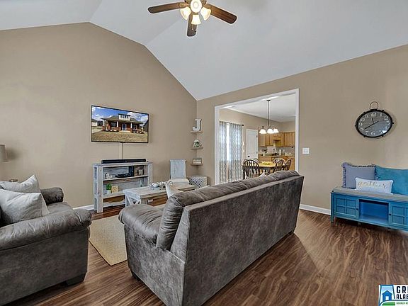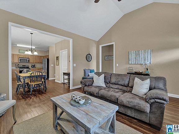 Welcome Home to a fantastic easy living 1-level home in Margaret. This open floorplan has a nice sized family room with vaulted ceilings, an eat-in kitchen with beautiful cabinets and stainless appliances and a split bedroom plan for privacy. The master bedroom has an en-suite master bathroom with double vanities, a standup shower and the other 2 bedrooms share the additional full bathroom. This home offers several nice features including hardwood floors in all living and bedroom spaces, bronze hardware, neutral paint throughout and main level garage for parking or storage. This home also gives you a sense of privacy with no one behind you and the neighborhood is convenient to the interstate, shopping and schools. Move-in ready so schedule a private showing today!