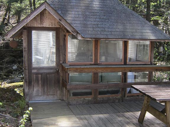 Since it was previously listed for sale, foundation work was done under the kitchen of this cottage; a new kitchen floor and a new shower were installed. When you step through the entrance, you leave the everyday world behind. Before you is a cozy kitchen with a chandelier, corner cupboard and wood cabinets. Just ahead is the living room with a cathedral ceiling and a wood stove - perfect for cold winter days. The magic happens in the rear yard with the stream cascading down the hillside, past the glass gazebo and deck. The sound of the falling water is truly relaxing. And the rear yard is completely private. The unfinished loft above the garage could be fitted to your preference. The location is close to the paved road, allowing easy access, even in bad weather. Walk to swimming holes just down the road. Walk to Williamsville village. This property makes an ideal vacation home. Kayaking on the Sunset Lake Reservoir is nearby. Lots of outdoor recreation is around, including skiing, mountain biking and hiking. Only 15 minutes from Brattleboro, yet set in its own special place. Not able to be VA or FHA financed. Can be used seasonally in all 4 seasons, but cannot be used as a primary residence. Being sold as is. Delayed showings begin Saturday 4/27/24.