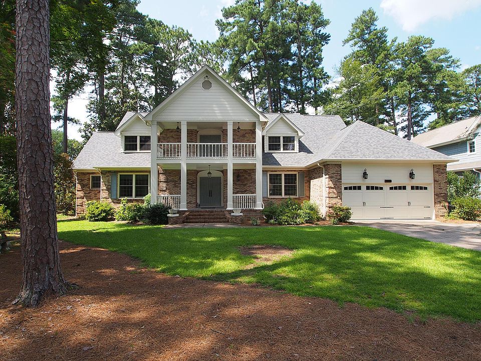 This lovely golf front home in the desirable neighborhood has a charming and unique floorplan and offers wide vistas of Course #1 and the 4th hole of Pinehurst Country Club. This home has been beautifully renovated with a new kitchen with a private sitting area, new master bath and new roof and gutters in 2017. They also added a new patio, fire pit and outdoor lighting in 2017/18, as well as granite in the bathrooms and laundry. The basement was encapsulated in 2018 and a new Nutone Sound System, new attic insulation, new storage room in 2019, new garage door and new washer and dryer. Wow - so many great upgrades! The kitchen is awesome with custom cabinets by Locklear Cabinets - one of the area's best cabinet makers - granite countertops, upscale appliances and a fireplace in the