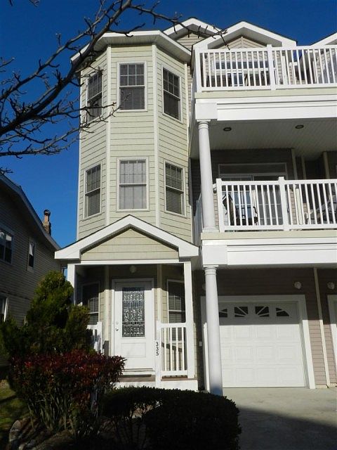 Beautiful Townhouse very close to the beach! Gorgeous views from both outside Porches. This has 4 bedroom 3.5 bath has two master suites. The first floor bedroom is very large and spacious with a private bath. The second floor has the kitchen and living room. The third floor bedroom leads out to a deck which you can see the Ocean-views and private bath. The other two bedrooms on the third floor have bunk beds and are ready for all of your summertime guests. There is a bathroom for them to share in the hallway. The Kitchen features granite counter tops, stainless steel appliances and tile flooring. It has a counter top with stools perfect for hanging out. The kitchen opens up to the living room where you can see a gas fireplace ready to use in the cooler months. There is a built-in surround sound system and a large flat screen TV. There is a nice sitting area off to the side. It has a deck on this floor which also has a view. It has a garage and plenty of storage space. This lovely townhouse is close to the Boardwalk and the beach.