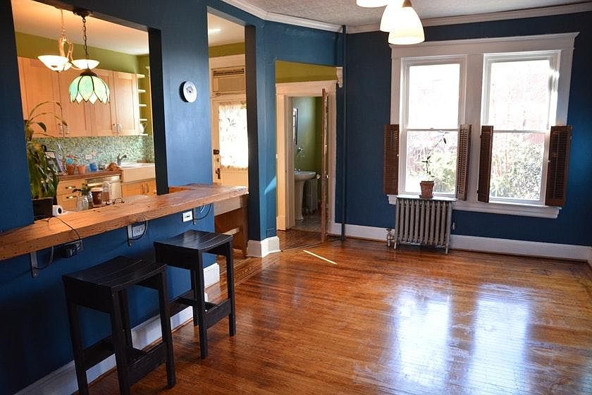 In Charles Village on quiet street. This large two story home has 3 bedrooms and 1 1/2 baths, with large open rooms and high ceilings. Open floor plan on the first floor with a built-in TV / shelving unit and a large breakfast bar. There is a washer/dryer, a renovated kitchen with concrete countertops & stainless steel appliances, and a large fenced in backyard. Located within walking distance of Eddies, Starbucks and Johns Hopkins University. Pets negotiable. Two year lease option. Tenant responsible for gas, electric and water.