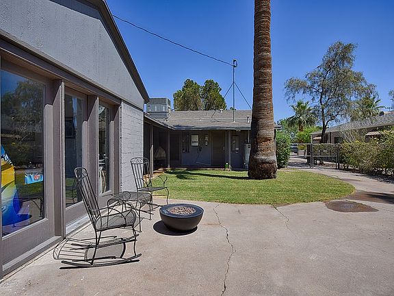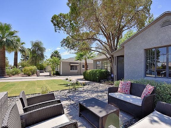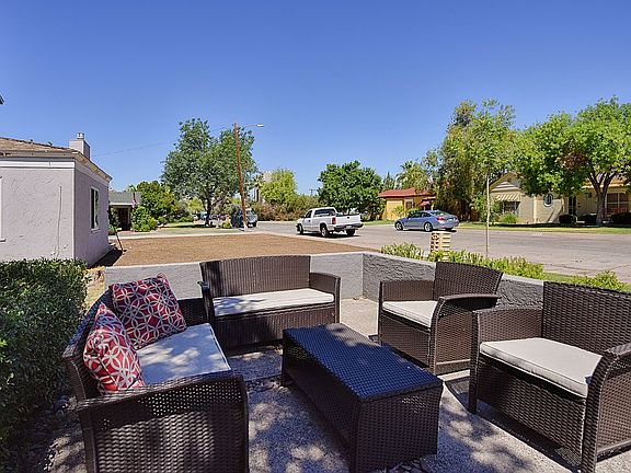 You are looking at the newly discovered “Udall House”, which is situated in the East Alvarado historic district (A 30 home historic district, located from 3rd Street to 7th Street, on Alvarado Rd. that is listed on the National Register of Historic Places). The East Alvarado subdivision was platted in 1929 by real estate developer, Greene and Griffin. This Monterey-style home was built by John A. Janson in 1945. John “Nicholas” Udall, the house’s namesake, was a 3-term Phoenix mayor who had this home custom built in 1944-1945. The current owners have preserved many of this home’s historic features while sensitively modernizing the home. The living room has a delightful, original steel casement oriel window + picture window, arched walkways, built-in bookshelves, fresh white paint and finished concrete floors. The original steel mailbox and glass block windows are historically-intact. The living room leads to the formal dining room, which has many original features including the arched walkways, built-in shelves and telephone niche. It has finished concrete floors and fresh white paint. The spacious, eat-in kitchen was remodeled, while maintaining an overall classic style. White shaker-style cabinetry and glass uppers are paired with dark granite countertops. There is a dual basin stainless steel sink and stainless steel appliance package including smooth-top electric range/oven, built-in microwave, dishwasher and refrigerator. The banquette features paneled details and upholstered bench seating, with a coordinating glass + wood table. The owner’s suite features an enduring palette including rich plank laminate wood floors, white wainscoting, classic gray paint and picture window overlooking the rear yard. The owner’s bathroom features a porcelain pedestal sink, ceramic tile floors and faux-rustic ceramic tiled shower. There are 2 additional bedrooms inside the main home. Both feature two-tone paint, rich plank laminate wood floors, original steel casement windows and ceiling fans. The 2nd bedroom has a custom solid wood Dutch door. There is a permitted 4th bedroom (constructed in 1948) which can also be used as a guest quarters, office, studio or media room. It is under roof of the main house, but has a separate entrance. The current owners gutted the space, installed the porcelain wood-grain tile flooring, framed in walls and ceiling, added electrical outlets, added a toilet, replaced the exterior siding and installed the kitchenette. It has a ¼ bath currently, but there is space that can easily accommodate the addition of a shower and sink, if desired. The new kitchenette has white and gray shaker-style cabinetry, acrylic countertops, under-mount dual basin stainless steel sink, new porcelain wood tile floors, fresh paint, ceiling fan and laundry hook-ups. The landscaping in the front yard was completely re-designed and modernized, while incorporating the existing mature trees and hedges. In the rear yard, there is a grass island with mature palm tree that is surrounded by a wrap-around covered patio. There is no alley behind this home; it backs to million dollar historic estates, in the Los Olivos historic district.