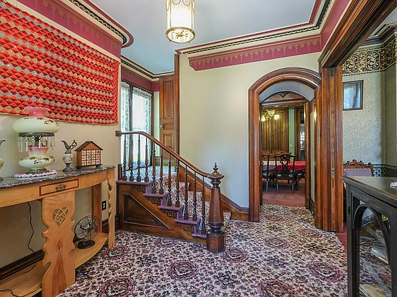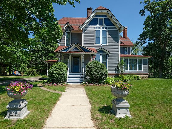 The Willowbrook one of Plainwell's Historic Treasures. Built in 1881 it has spectacular views of the Kalamazoo River on its East Side. There isf 3,658 Square Feet of beautifully restored Space. This includes a 2nd Floor Apt. that can be used as a Mother-in-Law apt and is currently being rented for $700 per month tenant pays cable & ½ internet. The second floor apartment, if incorporated back into the main house, would yield an additional master suite with wood burning fireplace, a sitting room, another large bedroom,&full bathroom The walls that do not have wallpaper on them have been freshly painted.The Main Floor has a kitchen, family room w/ wood burning fireplace and views of the river, music/library room, dining room w/ arched doorways & built in china cabinets, huge remodeled master suite w/ gas fireplace, the formal living room has pocket doors w/ curved walls & marble fireplace.