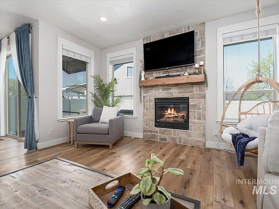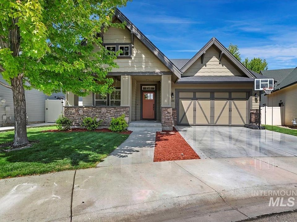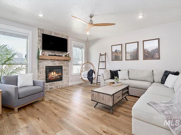 NW Meridian Charmer! Truly turn-key, this home shines with pride of ownership. Stunning interior includes new LVP flooring throughout the entry, kitchen, living space and primary bedroom, new interior paint, soaring ceilings and an abundance of natural light. Open-concept floor plan features main level primary w/ private bath, show-stopping floor to ceiling stone fireplace & elegant wainscoting. Kitchen recently underwent a complete remodel to include custom cabinetry, beautiful quartz countertops, and farmhouse sink! Charming front porch comes with a swing for 2 to enjoy cool evenings directly across from the community park. 4th bedroom can be used as an office. Minutes from excellent schools, The Village & entertainment!