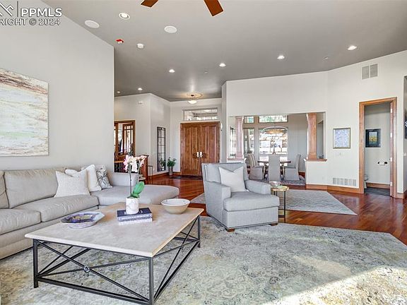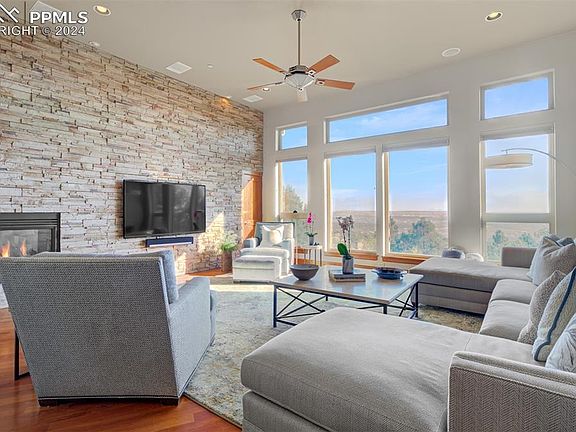 Immerse yourself in the pinnacle of luxury in the sought-after Broadmoor neighborhood of Colorado Springs. This extraordinary residence is a hidden treasure, offering awe-inspiring panoramic views from its gourmet kitchen, expansive living area, and lavish master suite.The home's centerpiece, the grand room, showcases exquisite hardwood floors, subtly enhanced with architecturally designed slate inlays. A striking stacked stone wall, featuring a cozy gas fireplace, is mirrored in the lower level, creating a harmonious design throughout the home.The grand room seamlessly transitions into a formal dining area and a state-of-the-art kitchen, equipped with a six-burner gas stove, walk-in pantry, and stunning granite countertops. The kitchen island is perfect for breakfasts, meal prep, and entertaining. Adjacent to the kitchen, a charming breakfast nook offers unforgettable views. The master suite is a sanctuary, offering city skyline views, a spacious walk-in closet, and a spa-like shower. A private deck and hot tub complete this tranquil retreat.The main level office space, adorned with 9-foot high glass French doors, is ideal for homeschooling or a home office. The lower level is a haven for relaxation and entertainment, featuring a spacious family room, movie area, wet bar, additional bedrooms, bathrooms, and a versatile home gym/storage space.This distinctive home, with its superior views, exceptional quality, prime location, and thoughtfully designed layout, is truly a one-in-a-million find. Experience the extraordinary in this Colorado Springs luxury home.