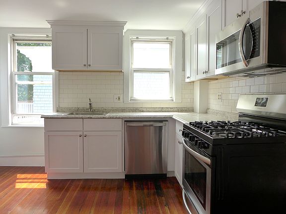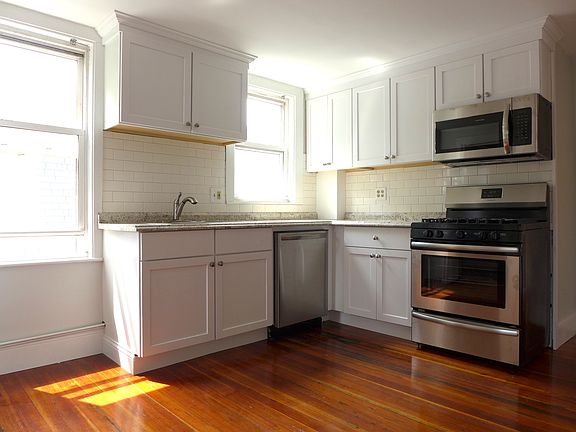 NO REAL ESTATE FEE This freshly renovated three-bedroom apartment on a peaceful Brighton street features all new stainless steel appliances including gas stove, dishwasher, and microwave plus in-unit laundry, hardwood flooring throughout, ample storage, and ceiling fans in each bedroom. Enjoy two private porches, free street parking, and a pet-friendly policy allowing one cat. With a local, responsive landlord, no security deposit, and quick access to the Mass Pike, express buses, restaurants, cafes, and the YMCA, this home blends modern comfort with unbeatable convenience.