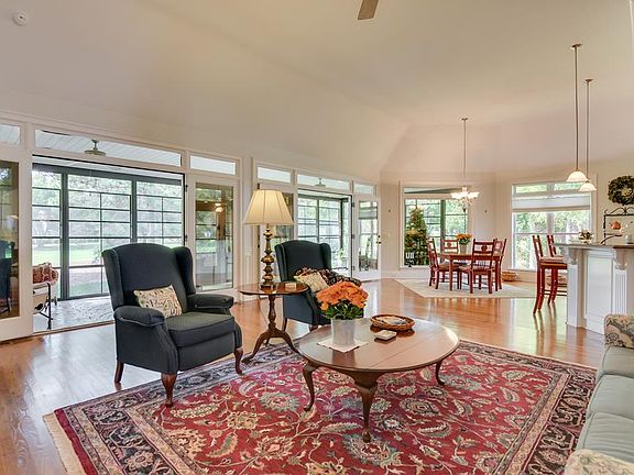 Open the door to this Custom Designed home and you will easily see quality and warmth. Spacious, open, great room with fireplace, wall of windows including 2 sets of French Doors. Dining Room easily seats 8+. Absolutely wonderful Kitchen, Seating Bar and Breakfast Room will be the gathering place for Family and Friends. Granite counters, 5 Burner Gas Cooktop, Island w/electric, triple sink, Double Ovens, one convection. Pantry is 8.10x6. Laundry is also a Butler's Pantry. Master Suite is spacious with Jacuzzi Tub, Walk-in shower w/long seat. Bedroom 2 has full bath that is also open to Hall. Bedroom 3 has efficient Office in closet area that can be converted back to hanging if desired. Spacious bonus for bedroom or Media/Hobby + full Bath. 3 Season Room is 28x13 w/golf view. Loads of storage, all closets large. ALL WOOD FLOORS, Tall Ceilings, Double Crown Moldings, All Back Windows Tinted, Well for outside water, Level Property w/few steps into home. Lovingly cared for Home!