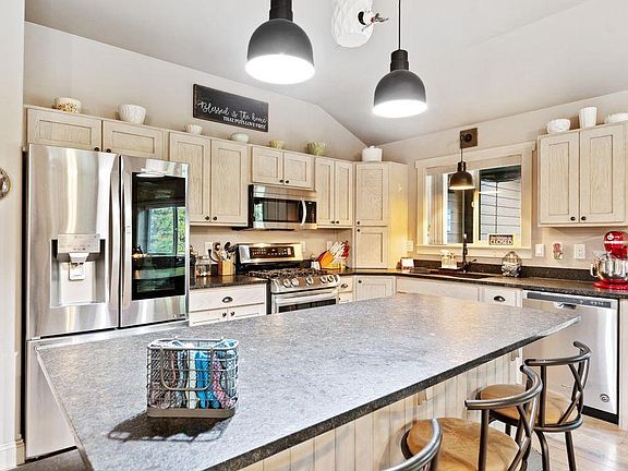 Well appointed contemporary traditional home, cozy and ready for your retreat! Wooded views and wildlife abundant. Close to town (11 miles/20 min), midpoint to Flathead Lake, Glacier National Park and two ski resorts. Perfect for your vacation rental or short term work in Kalispell home away from home. Fully furnished with quality furnishings and a fully furnished kitchen, find everything you need for your family or small group. Attached garage parking with mudroom and half bath from Garage lead conveniently to the Kitchen. Open floor plan with cozy Gas Fire places, Plus a cozy office flex space off of the Main level Bedroom Suite. Upstairs offers a queen bedroom and twin bunk bedroom with full bathroom. Come enjoy the fresh mountain air in this private refreshing setting! Please contact for Lease terms
