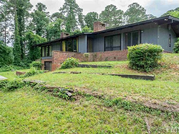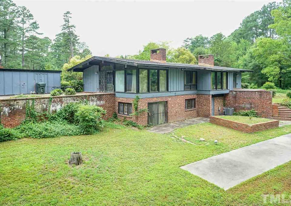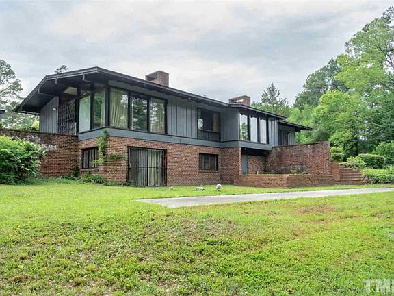 Rare opportunity to own a Mid Century Modernist gem in Longview Gardens: Originally known as the Norwood Smith House, the design is attributed to Architect Lewis Polier. The long linear front exterior gives way to a 2 story back facade overlooking fairways 4 + 7 of the Raleigh Country Club. The home boasts 3 fireplaces; vaulted ceilings w/ soaring windows in main rooms, original wood paneling + clay tiles in foyer. Rooms in back access patios. The home is nestled in a cul-de-sac w/ exceptional privacy.