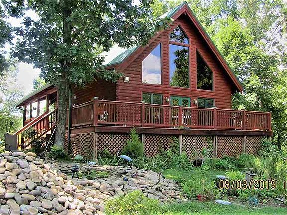 WHERE TO BEGIN !!When you first pull into the driveway, you CAN NOT help but absolutely FALL IN LOVE with This Immaculate LOG HOME..... offering great wrap around porch, shade trees, landscaping, and the AMAZING LAKE VIEW!! Walk right in to the main level, you'll find the Open Living, Kitchen and Dining areas, complete with TIGER Hardwood flooring, Custom HICKORY Cabinets, island, FALLOW DEER Chandelier, free standing gas FIREPLACE, Cathedral Ceilings, PELLA Windows, Walk in pantry with AUTOMATIC lighting (and the W/D can easily be moved up to main level, plug in already there) Master bedroom with DOUBLE closets, large master bath with CUSTOM vanity, TILE shower ,linen closet, STAIN glass window, custom sliding BARN DOOR. Up the stairs, from the loft, you can look out over the living area, plus a finished BONUS room (or 4th bedroom) FULL bath with JACUZZI tub, and lots and lots of storage. From the hall on the main level, you'll find the basement stairs, right into the FAMILY ROOM, separate entrance, FULL bath, large utility room with a SINK and INSTANT hot water heater, and 2 more bedrooms. But this IS NOT all..........this home also offers a RV hookup with 30amp service, outbuilding, koi pond with water feature and lighting, double garage (also log) with BONUS space overhead, and door on each end for drive thru,(How cool is that????), plus a GENERATOR that keeps most of main level going during power outage !!! ALL OF THIS........the BEST PART is the Large Shade Trees covering the gently sloping lined walkway down to the PRIVATE DOCK, complete with a JET SKI LIFT !! This great home sits in the small quiet subdivision of Goose Pointe at the cul-de-sac !!