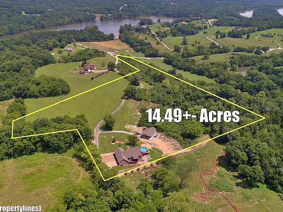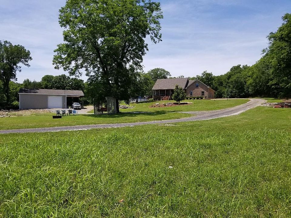 Gorgeous- Spectacular- Private- Just a few words that come to mind to describe this 9.25 acres and 5 year old brick home that is just like new- 2,744 sq feet plus an over-sized garage and a 30x40 shop building with a lean to- Home has numerous upgrades, granite tops, tile shower, hardwood throughout main level, gas fireplace, vaulted and tray ceilings, massive pantry, custom cabintry, screened back porch, hot tub, pool, and walk to the Lake boat ramp! House and 14.49 acres only $449,900!