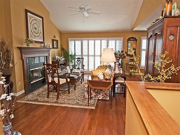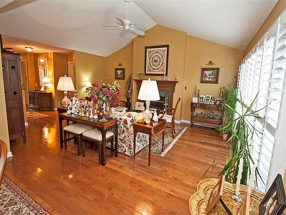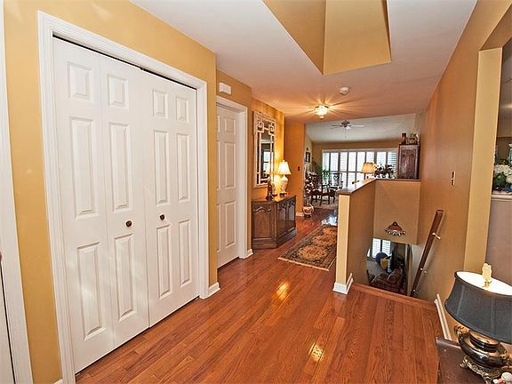 Beautiful home with the best of easy First Floor living. Well appointed kitchen with pantry and cozy seating area. Beautiful Master with large walk in closet and laundry conveniently located off of Master bedroom. Large open living room space with doors leading to the wonderful deck overlooking the beautiful woods. Awning adds privacy and a beautiful outdoor room space. Double sided fireplace is enjoyed in the Living and Master Bedroom. Spacious Dining room off of kitchen for easy entertaining. Finished lower level with game room, bedroom and den. Den could be 3rd bedroom. Doors lead to the outside providing an abundance of natural light. Huge amount of storage. Plantation shudders through out. Two car attached garage