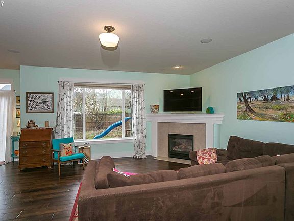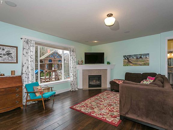 Welcome to this cheerful home! Wonderful updates add fun character to this charming space. In the kitchen, colorful recycled glass counter top on the island, subway tile back splash, butcher block counters, stainless appliances, pantry & beverage bar area. Enjoy the 'hand-carved' wood floors, custom base board, gas fireplace,'Nest' thermostat, high ceilings & natural light. Including a back patio, garden beds, & play area. A happy home!
