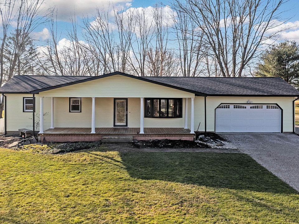 OPEN HOUSE CANCELLED!! Welcome to your dream home! The property includes 2 parcels with a combined acreage of 1.03 ac. This charming ranch-style home has been meticulously renovated from top to bottom, inside and out . The open-concept living spaces flow seamlessly, w/ a renovated kitchen boasting state-of-the-art appliances. The spacious owner's suite offers a tranquil retreat, complete w/ a renovated bathroom and walk-in closet. Recent updates include a new roof (23),HVAC(23),well pump(22),hot water tank(16),new garage door(16) & new flooring & Ceiling. Enjoy the deck and expansive property, perfect for outdoor dining & relaxation. Property also features a new shed for added storage.