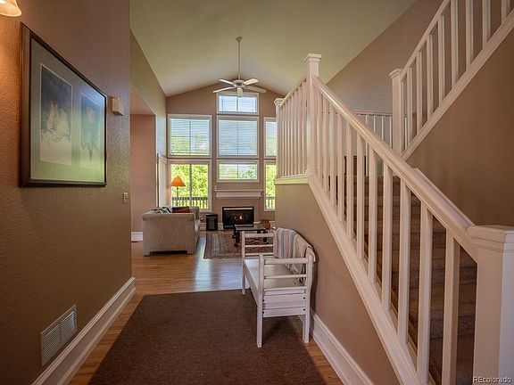 NEW ROOF June 2018. Golf course lifestyle 2 blocks from clubhouse at Indian Peaks. Main floor living with master bedroom and laundry on the same level. HOA includes mowing, irrigation and snow removal. Large deck extends from dining room for the length of the house. Private without direct backyard neighbors and gorgeous mature trees. Upstairs has second bedroom plus office space. Finished walkout lower level has covered entertaining area, recreation room, 4th bedroom and loads of storage!