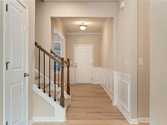 Better than new construction! This beauty has shed it's builder grade blah and gleams with ALL-NEW flooring and paint throughout! Freshly plush carpeting up with sleek, easy to clean LUXURY vinyl tile on main, plus gorgeously new stair-treads! As you step into the spacious foyer you are immediately greeted by UPSCALE lighting for a dining room or formal living room. Everyone ends up in the kitchen, right?! And, this one does not disappoint; there's tons of storage, tons of counterspace and you'll never miss the game while you're prepping a feast or sipping a cool beverage around the island with friends. PLUS a pantry big enough for all your treats and then some! Upstairs you'll find 4 large bedrooms, all with vaulted ceilings. Bunks, anyone? Each bedroom has a sizeable closet and 2 share a Jack n Jill bath. Saving the best for last- the Owner's Suite is SWEET! Unwind in the soaking tub, twirl your way to any size bed and when you're getting dressed, it'll feel like shopping in splendor; your own boutique where organization meets elegance - because your wardrobe deserves to be indulged, too! A truly quiet neighborhood makes lounging in the fully fenced backyard a true escape from the rest of the noise. Call your favorite Realtor and book a tour- you'll be grilling out and loving your new place in no time! This home is a level up and yet still convenient to shopping, parks, major highways and ATL airport.