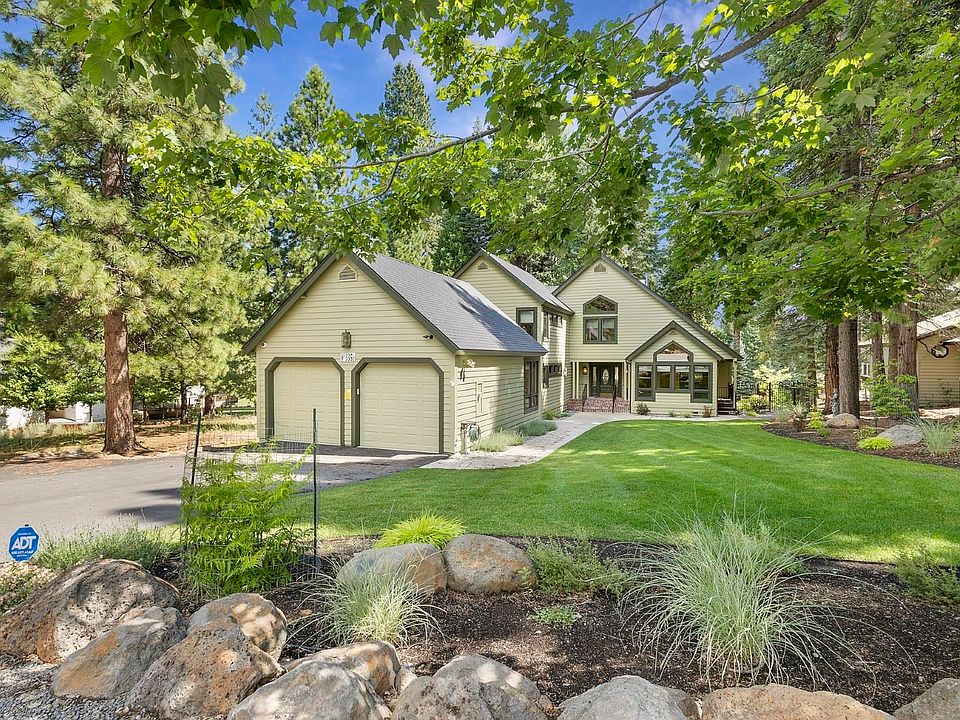 This spectacular open, light & airy home sits on the Lake Almanor West golf course's 5th fairway, just round the corner from the LAW boat launch. Highest quality custom built with a newly remodeled kitchen, a huge rear deck with built-in bar & frig. Fenced rear yard, panoramic golf course views & patio w-firepit. Great room w-gas log heating stove, dining area plus a cozy den. Primary bedroom suite on the main level opens to patio includes cedar-lined walk-in closet, large bath w-shower. tub & dual sinks. Two guest bedrooms plus full bath on upper level. Sunroom connects the garage with utility room for easy level year-round access and houses a full-size Subzero freezer. Home has radiant heated flooring for warming up and a whole house fan for cooling down. Just finished new exterior paint & new roof. An automatic generator completes the package. Plenty of indoor & outdoor space for you, family and friends to enjoy all Lake Almanor has to offer.