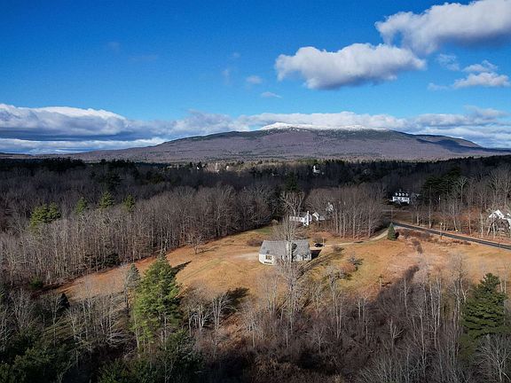 This stunning 2-bedroom, 2.5-bath contemporary home was designed by an architect who apprenticed with Frank Lloyd Wright, lending the property a unique blend of modern style and timeless craftsmanship. The centerpiece of the living area is a striking floor-to-ceiling granite fireplace, with a soapstone woodstove set on the reverse side for added warmth and charm. A second full granite fireplace can be found in the partially finished basement, adding to the cozy atmosphere. The home features a mix of slate flooring and soft carpeting, and every room is filled with custom, hand-built details that showcase the artistry of the design. Large windows throughout the house capture sunlight, providing natural warmth and a connection to the surrounding landscape. Situated on 7.84 acres at the entrance of historic Jaffrey Center village and nestled at the base of Mount Monadnock, this property offers a serene and picturesque setting with a sense of history and architectural elegance. Delayed showings until open house on Sunday 12/1/24 from 10 am – 1 pm