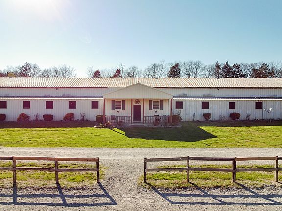 2000+/- sq ft living area inside a 32 stable horse barn all on 17.8 acres. Master bedroom downstairs with remodeled bath. Land has road frontages on two sides. 10-15 acres are fenced. Two out buildings 30x60 equipment shed and 28x38 Pole barn. Outdoor riding arena . Round pin does not stay .