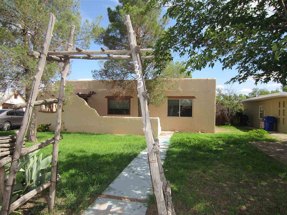 An adorable historical pueblo style home with a large back yard, perfect for outside living. This property has 2 storage sheds, new roof in 2010 and window replacement in 2005. All appliances stay! Stove, refrigerator, washer and dryer. "Sold as Is".