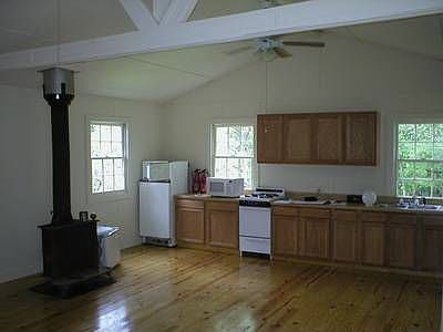 MOUNTAIN VIEWS AND STREAM! Private weekend getaway near George Washington National Forest, Trout Pond and Rock Cliff Lake. Lovely cabin currently used for short-term rentals. Open floor plan with great room, cathedral ceiling. Rustic knotty pine floors. Metal roof 2 years old. 200 amp electric. Spring water. Heat choices: Electric baseboard, propane and wood stove. Two sheds - 8x12 and 6x12.
