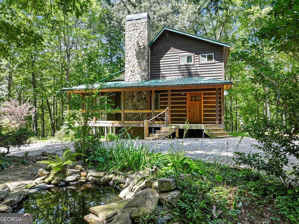 Private Mountain Retreat with Income Potential in My Mountain Meadowoods. Partially remodeled and full of character, this property presents an ideal opportunity for a live-in renovation with excellent upside. The spacious garage offers ample storage or workshop space, with a 1BR/1BA living area above-ideal for guests, a studio, or potential rental with added improvements. Gentle mountain view peaking through the peaceful setting, creating a true retreat atmosphere. Set on 2.41 serene acres with a koi pond and park-like landscaping, this property offers the perfect blend of privacy and potential. Interior highlights include a cozy wood-burning fireplace, chink log siding, a mix of wood and sheetrock finishes for a classic cabin feel, a charming playhouse, solar panels, and a loft area ideal for a home office or reading nook. Enjoy the tranquility of mountain living in a quiet, well-established neighborhood-ideal as a full-time residence, weekend escape, or investment opportunity. Live, renovate, invest-or do all three.
