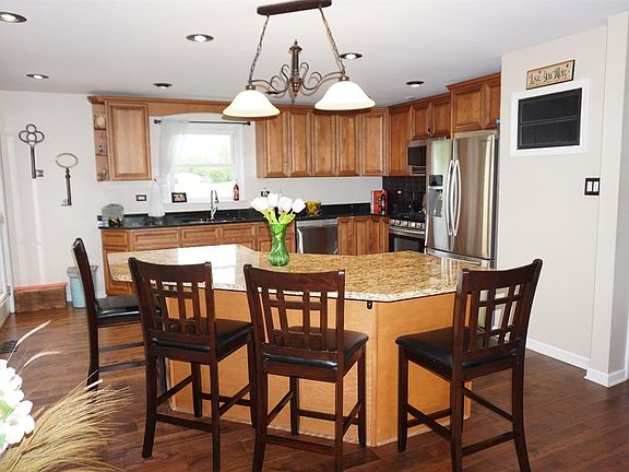 A Stunning Renovation has been done in this Home!!! This home has been Lovingly Re-Done inside and out. Inside is a Gourmet Kitchen with an Island, Granite Counters, Soft Close Cabinets, Recessed lighting, Engineered Birch-Chestnut Flooring and all Appliances. New Flooring and Carpet throughout the house. Updated Main Floor Bath and Totally Re-done Upstairs Full Bath. Outside is a Covered Porch, Fenced yard, Shed and Beautiful landscaping. Behind the Back Yard is school property so no homes are behind you at all. The Roof, Siding and Windows are Newer with an 80% Efficient Furnace. Come and See for yourself!! You will not be disappointed!!!