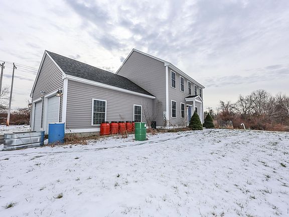 10 year young colonial with a great floorplan and plenty of outdoor space! This home offers privacy set way back off the road with lots of yard space for family, animals, gardening, and relaxing! White kitchen with granite countertops, stainless steel farmers sink, island, and slider out to your deck. Perfect for entertaining, the kitchen flows into the living room with propane fireplace and built-ins. Dining room and half bath with laundry complete the first floor. Upstairs, the primary suite is bursting with natural light and has 2 walk in closets, as well as a 3/4 bath. Two other bedrooms and full bath with bamboo flooring provide space for family or guests. The unfinished basement provides ample storage and potential for finishing if extra space is needed. Large attached garage and solar panels (owned) as well as a hot tub make this home a great place to make yours!