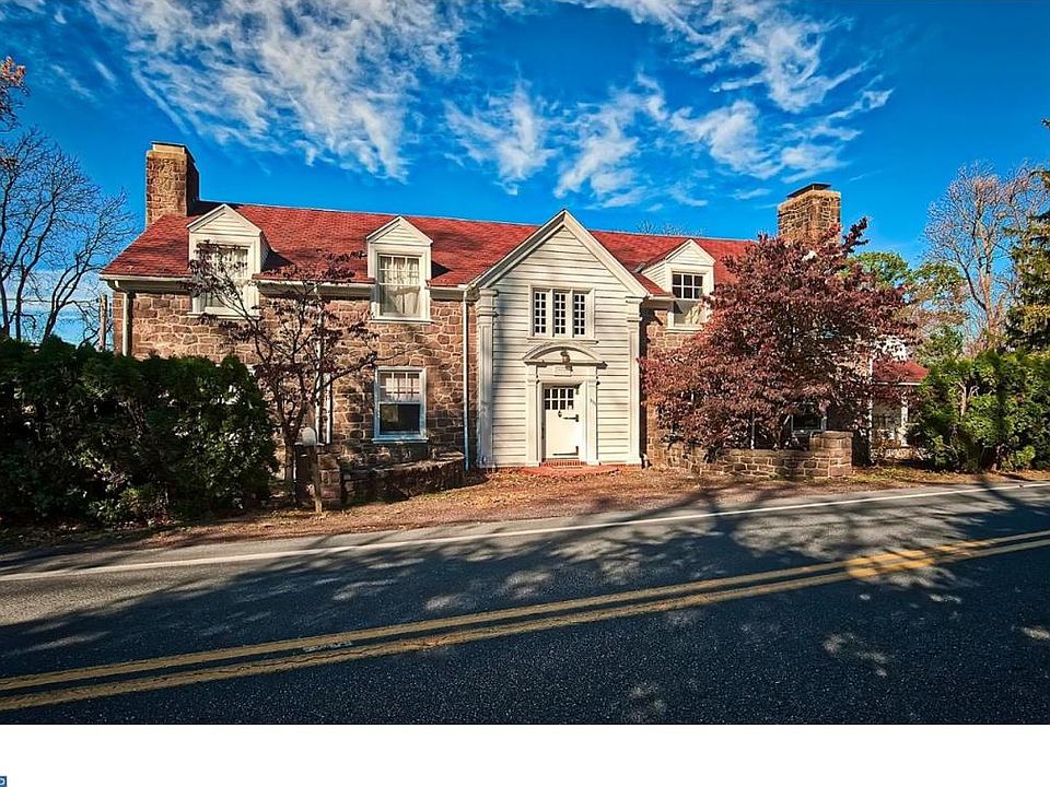 Stately Stone Farmhouse - circa 1849. Fantastic opportunity to own a truly one-of-a-kind home; this 5 Bedroom, 3-1/2 Bath, 4 Car Garage home boasting 5,000+sf of living space, was once a barn! Hard to believe when standing in the elegant foyer with marble floor and grand staircase! The first floor features Vestibule entrance; Powder Room; Library with built in bookcases & fireplace; Living Room with hardwood floors & fireplace; Dining Room with lovey mural wall detail; Covered Vernda; Modern Kitchen with loads of counter space, cabinetry, pantry and cozy banquette! The second floor Master Bedroom is truly a master's retreat - huge bedroom, closets, bath and dressing room! There are 4 additional bedrooms, 2 Full Baths and the Laundry on this level. The lower level features several rooms, including the mechanical room, work-shop, rec space (once finished family room space - a good use could be a media room), and access to the 4-car garage (2 car depth). This level has walk-out access to the back yard which has a lovely view of a stream, willow tree and fantastic in-ground swimming pool! There is a separate building on the property used as pool equipment storage and living space on the second floor- a bit of polishing could brought back to an efficiency apartment/guest space!There are too many architectural details to list - schedule your tour today of this rare opportunity!