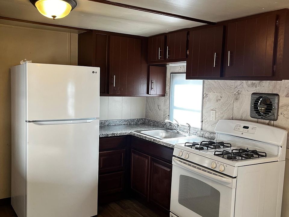 Recently updated tailer in small quiet mobile home park. New flooring throughout, small fenced yard. Bedrooms are 'very' small with built in dressers. Although it has 3 bedrooms one would best best for a small office. Includes apartment size washer and dryer. A pet may be considered for an additional non-refundable fee and monthly charge. Centrally located and in walking distance to many businesses and a park. Water, Sewer, and Trash included. Water, sewer, and trash included in rent. Renter is responsible for gas and electric.