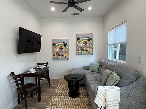 Charming Back House: Your Furnished Urban Oasis! Step into this brand-new, beautifully designed back house. This one-of-a-kind unit comes completely furnished, so all you need is a toothbrush and your personal belongings. The thoughtfully laid-out space welcomes you with a cozy living area, complete with a comfortable sectional. The dining table features a flip-up leaf for when you need extra room. The kitchen is a chef's dream, boasting brand-new stainless steel appliances including a stove, microwave, and refrigerator. With sleek quartz countertops and stylish shaker cabinets, you'll find all the pots, pans, dishes, and utensils you need right at your fingertips. The bedroom is a tranquil retreat, comfortably fitting a queen-sized bed. It offers a spacious walk-in closet with a dresser, providing plenty of storage. The bathroom features a beautiful tiled shower, vanity storage, and an in-unit stackable washer and dryer for your convenience. All utilities are included, making your move-in seamless and stress-free. Street parking is available. This is a non-smoking property. No pets, please. TEXT or EMAIL ALL Inquiries.