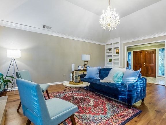 Need space? We've got you covered w/ this custom built estate situated on an impressive & very private 1+ acre lot. 6 bedrooms (2 primary beds), spacious office or flex room & elegant dining room. Like to entertain? Gather in the massive Den that overlooks the pond & cook a feast in the spacious kitchen. Hidden safe/secret room behind bookshelf in the Den. Office in garage has a separate entrance, so many possibilities! 4 car garage w/ a circle drive! Gorgeous, new hardwood floors & carpet.