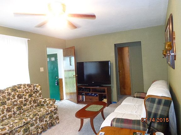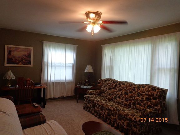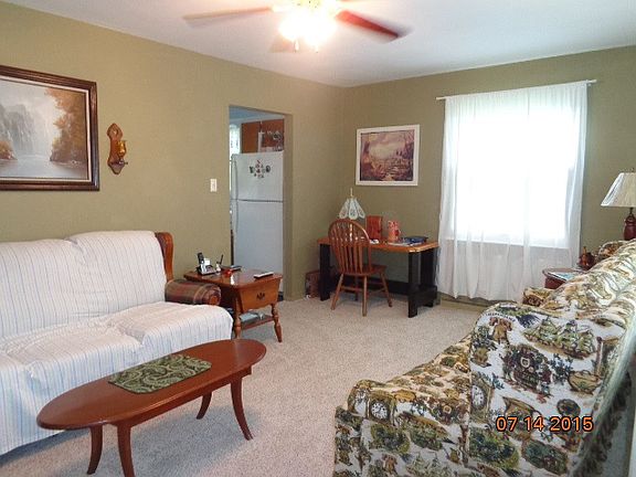 This home on quiet dead end street is move in ready, carpet only a couple weeks old, fresh neutral paints. This cute 2 bedroom 1 bath home has all you need to get started or retire. All appliances, including washer & dryer only 1 year old included with property. Eat in kitchen. The large 24x24 2 car detached garage has an attached lean-to covered patio that is 12 x 24 with a fire-pit near by. Well submersible pump was new 2002. Siding was painted within last few years along with a partial privacy fence. Average electric is $138 and gas is $23 per month