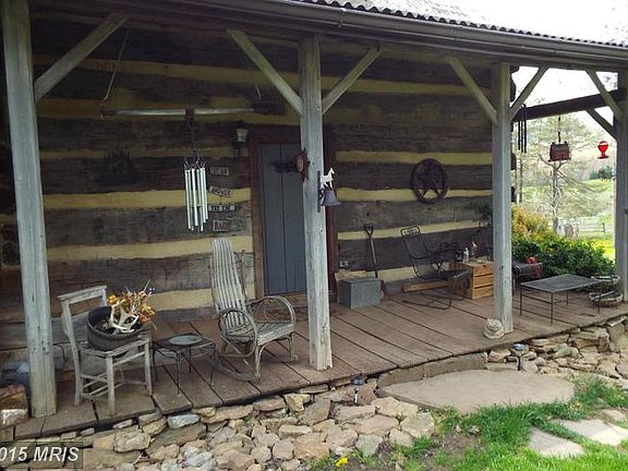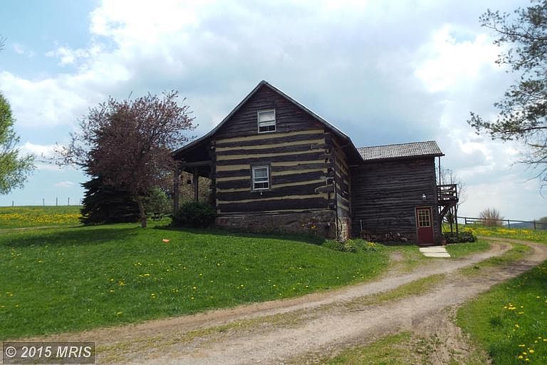 Unique Historic Log Home set in a breathtaking country setting with 35.45 aces. Panoramic mountain and pastoral views. Picturesque 10 stall horse barn, tack room, hay loft, electric and water in barn. Beautiful white pine floors, oak trim. 30 acres of fenced in pasture areas. Property includes a spring and a creek. Country living but minutes to town. Views of the Appalachian Mountains in WV.