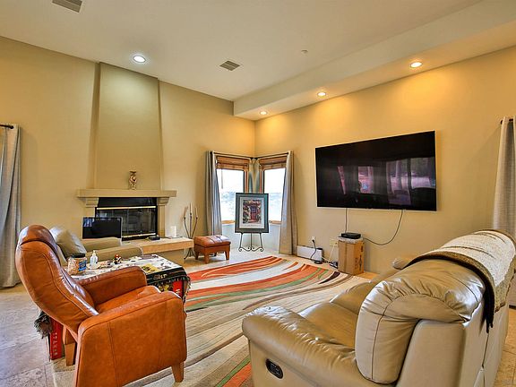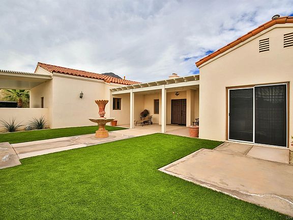 Grand home on 2.5 acres with close up views of Indian Head Mtn. This home features an open floor plan with high ceilings, entertainer's kitchen with granite counters and high-end stainless appliances, Travertine floors, wood doors and windows, 3 covered patios, private front courtyard, carport, RV hookups, whole house water filtration, 3 fireplaces, and 24 solar panels. Out back there is plenty of room for a pool, etc. Offered mostly furnished so you can move right in and start enjoying from day one!
