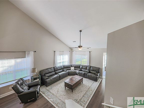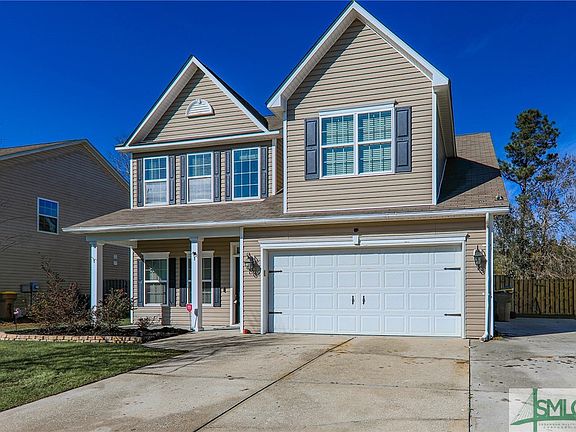 Stunning 5-bedroom home with bonus room, nestled in the highly sought-after White Oak community of Richmond Hill! Over 2,400 sq ft of living space. Updates include fresh paint throughout the home, luxury vinyl plank flooring in all living areas, an expanded driveway with added parking pad, and a whole-home water filtration/softening system. The main level features a spacious primary bedroom suite with dual vanities, a garden tub, separate shower, and a large walk-in closet. The kitchen is a chef's dream, complete with granite countertops, stainless steel appliances, new soft-close cabinets, two pantries, and a breakfast bar. The vaulted ceiling in the living room enhances the sense of space, while the formal dining room and bonus room offer even more versatility. Upstairs, four additional bedrooms, a full bath, and a loft area. Outside, a fenced backyard backing up to the woods, 10x10 storage shed, a wonderful playground, and a raised garden, perfect for relaxation and entertaining.